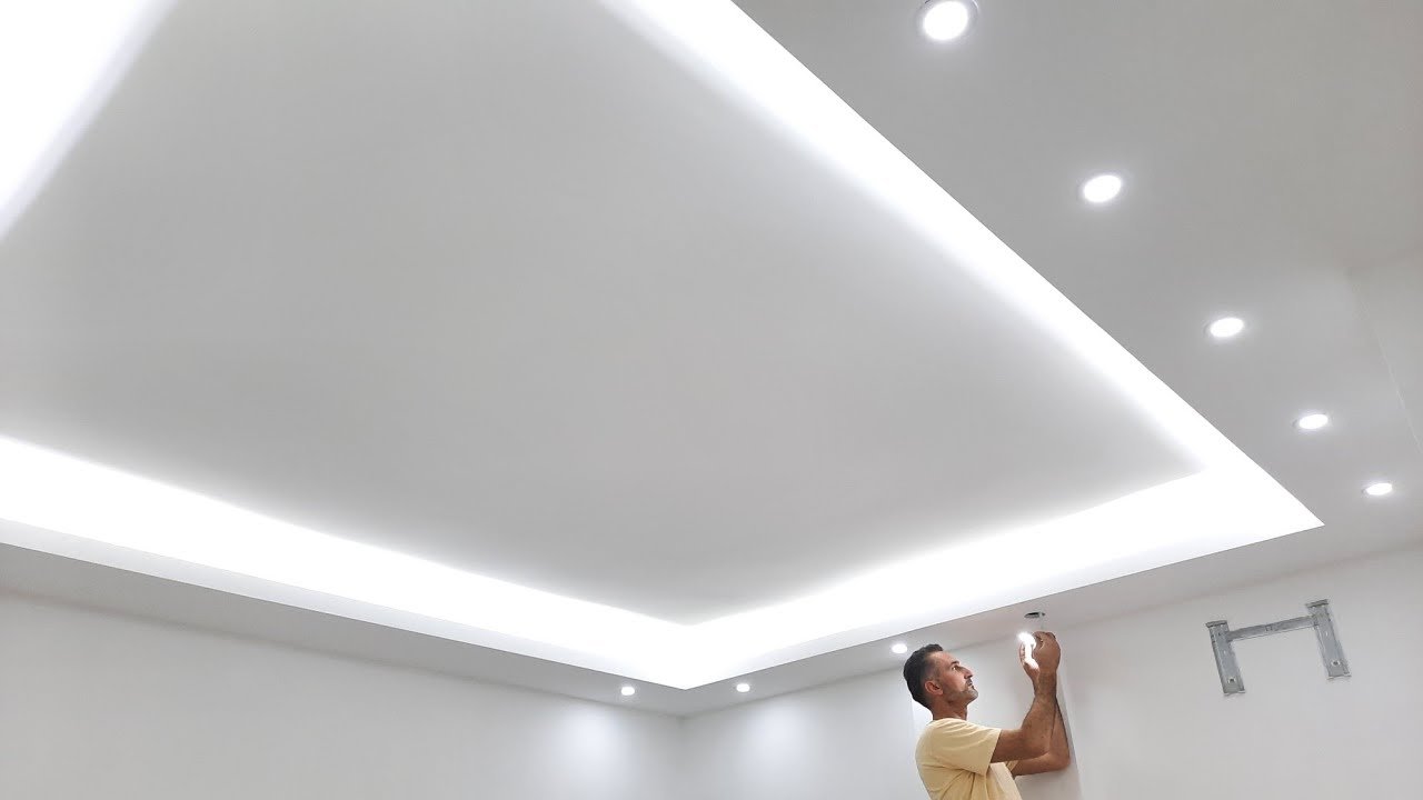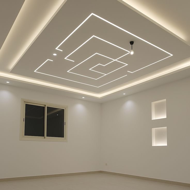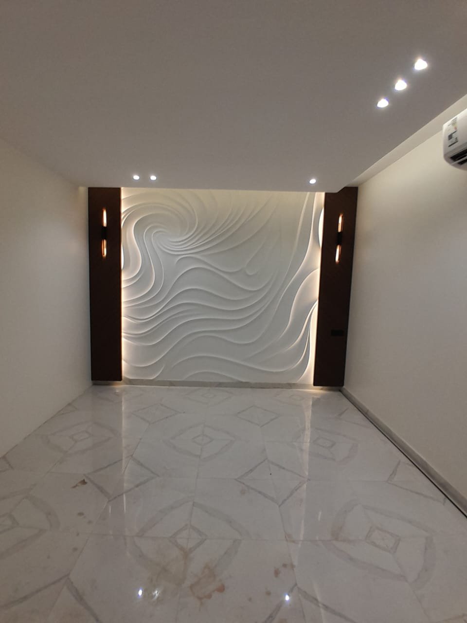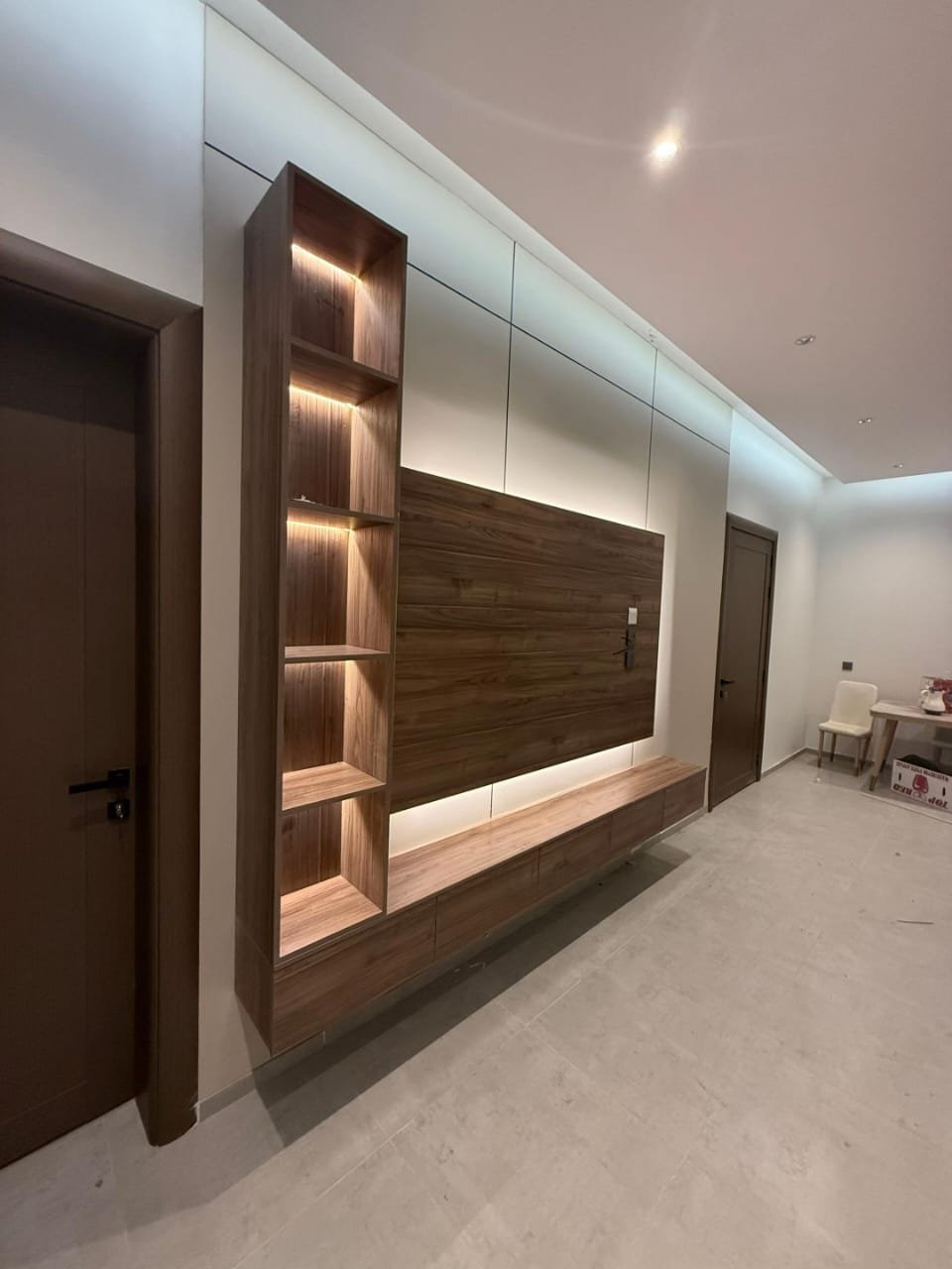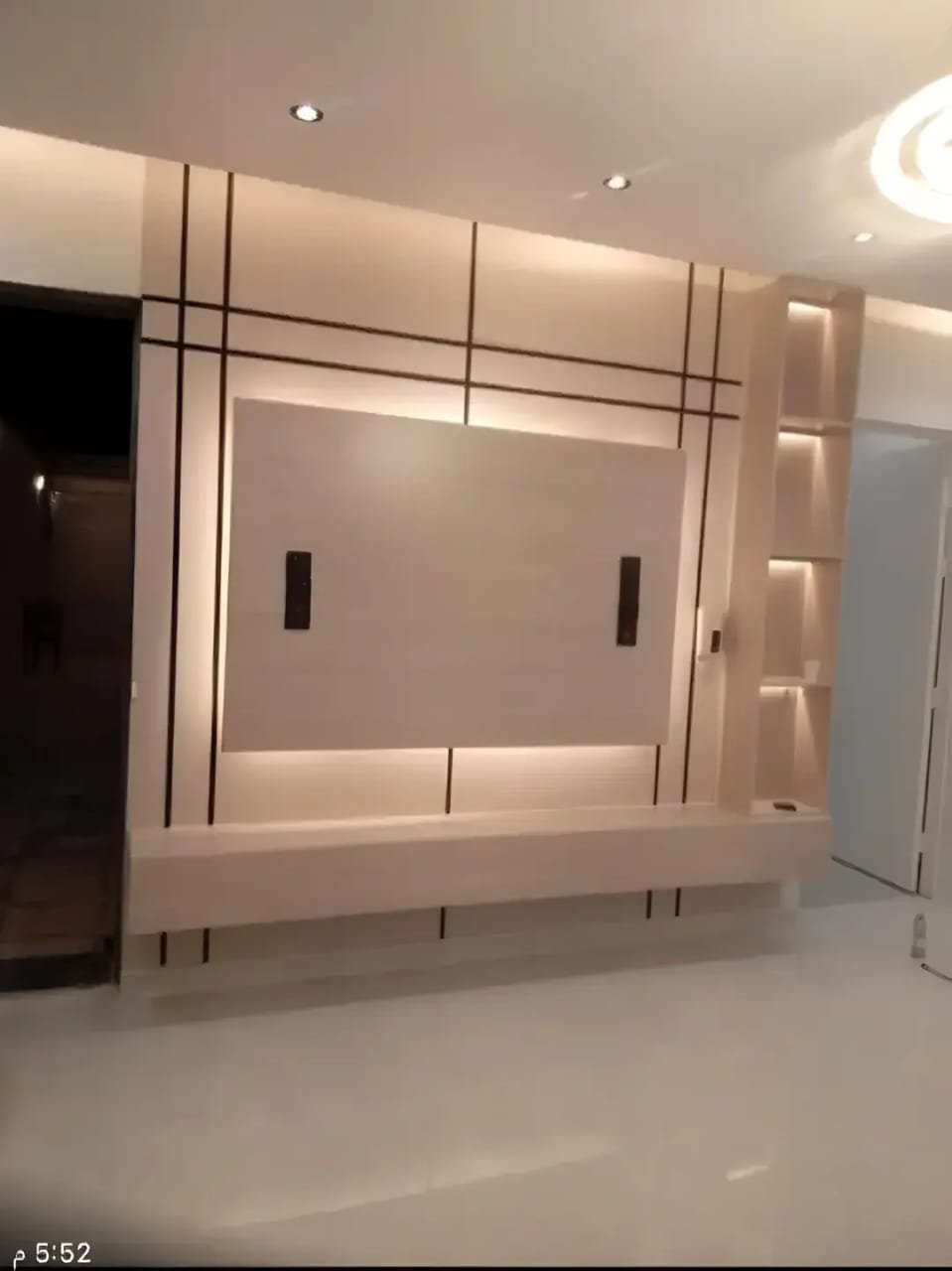 تصميم وتنفيذ جبس بورد للأسقف والجدران، مع إنارة مخفية، ديكورات تلفزيون، وأشكال هندسية عصرية.